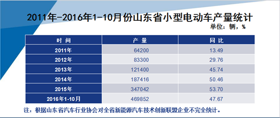 小型電動汽車產業(yè)在市場需求的拉動和政策有力支持下,產銷呈現(xiàn)快速發(fā)展的良好態(tài)勢。山東省汽車行業(yè)協(xié)會常務副會長兼秘書長魏學勤在此次高峰論壇發(fā)言中表示,山東省小型電動汽車產量已經連續(xù)三年平均增長達到50%,2016年1-10月山東省小型電動汽車產量為469852輛。